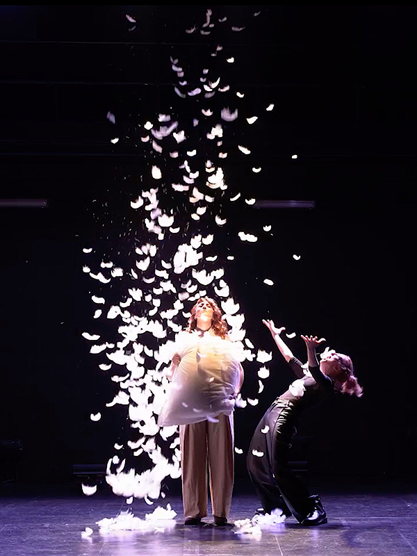 Estem a la sabana. La DJ alça la mirada i veu una parella de girafes ballant. Una parella de persones. Una parella que tracta de crear una història d’amor coherent amb les seues necessitats, més enllà de les normes de la sabana i del porno. Però la rutina, la criança i altres depredadors aguaiten darrere de l’arbust, posant en perill la supervivència de la seua relació. Giraffes sleep standing up és un espectacle no convencional sobre l’amor a l’estil d’un documental de naturalesa. A work with a feminist perspective that reflects on sexual and affective relationships, monogamy and parenting. Una peça crítica de The underground que confronta l’aparellament animal versus l’amor civilitzat, que desmitifica l’amor romàntic i al mateix temps l’eleva a la màxima potència. Queda una mica d’instint animal en l’amor? AU