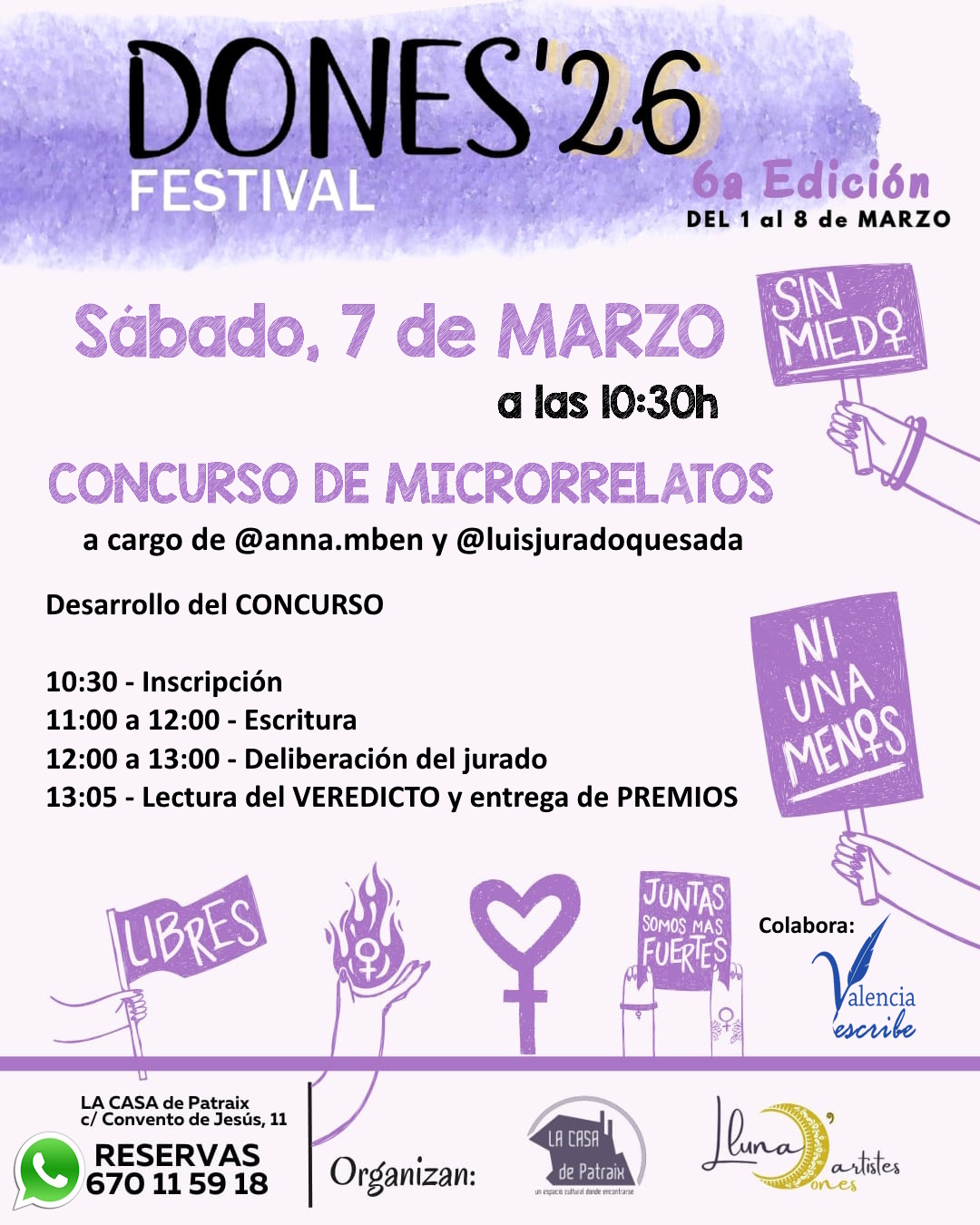 Actividad organizada por  lluna de artistes LA CASA de Patraix, con la colaboración de valencia escribe, dentro del FESTIVAL DONES’26