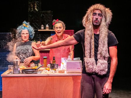 Unas payasas se enamoran. Se enamoran y cocinan entre el accidente y el beso. Y no les quedará otra que construir un paraíso donde cocinarán hervidos, purés de calabaza y arroz al horno o, quizá, abrir una bolsa de papas. Azucararse o ir hacia el despertar proletario de una vejez saludable. Cocinar o no cocinar, esa es la cuestión de la mano de tres payasas a quienes la industria de la edulcoración les ha pervertido el gusto y la voluntad. Clown, cocina en directo y crítica social.