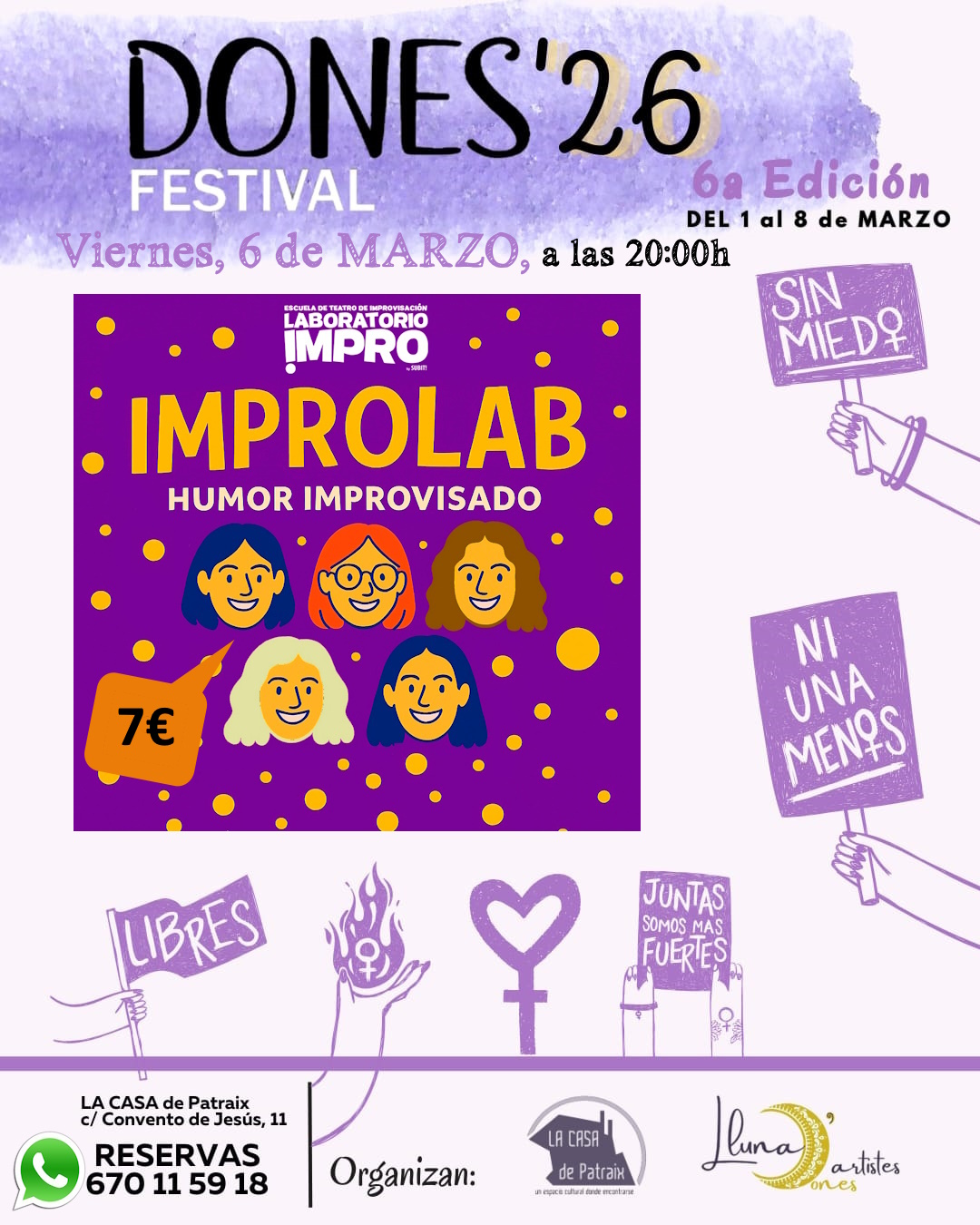 Actividad organizada por las lluna de artistes, laboratorio impro y LA CASA de Patraix, dentro del FESTIVAL DONES’26