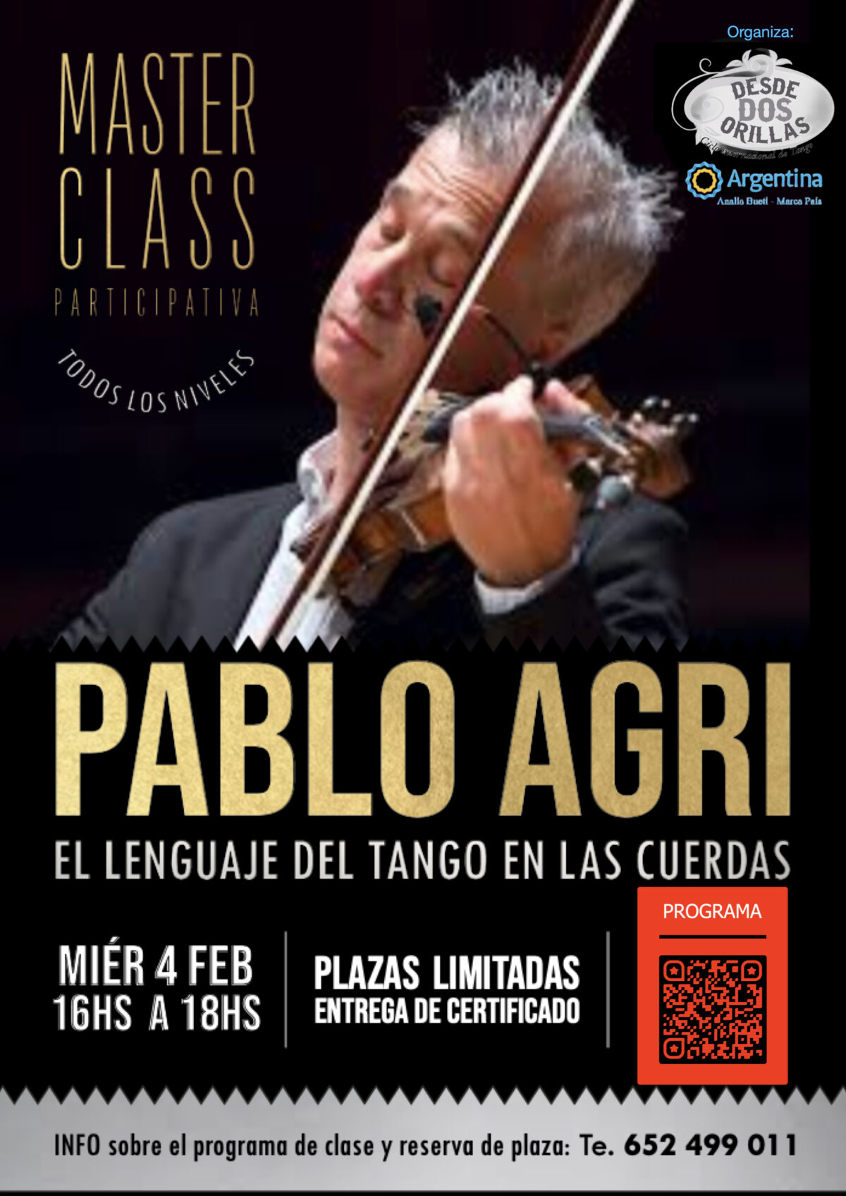 Reconocido como Personalidad Destacada de la Cultura de la Ciudad de Buenos Aires y Premio Konex de Platino 2025, Agri comparte en este encuentro su experiencia en escenarios y grabaciones, invitando a los participantes a adentrarse en la esencia del tango: su fraseo, su respiración, su carácter y sus recursos expresivos más característicos.