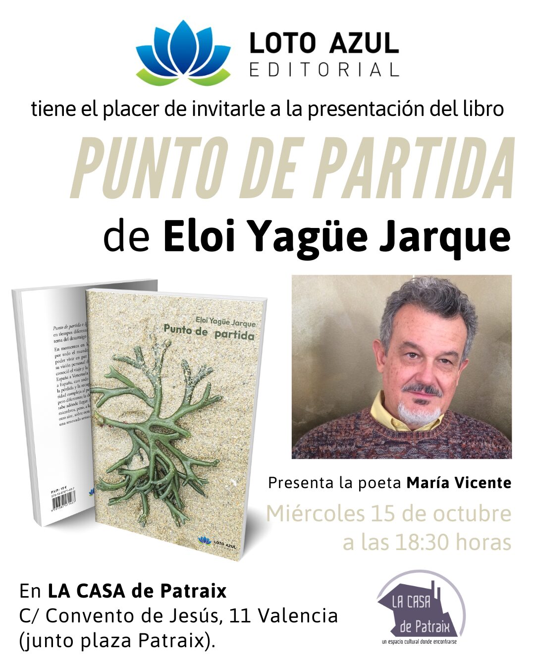 Eloi Yagüe Jarque, escritor y periodista, nacido en el Cabañal. Con siete años emigró a Venezuela. Vivó en Caracas, donde ejerció el periodismo, desarrolló una trayectoria literaria y fue docente en la Universidad Central de Venezuela. Tiene un máster en Literatura Latinoamericana de la Universidad Simón Bolívar.