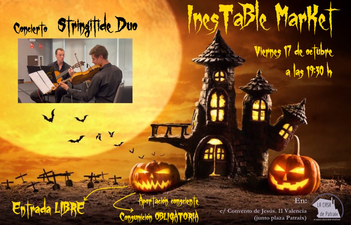 Dentro del InesTaBle MarKet, tendremos el viernes 17 de octubre, a las 19:30h un concierto, de… Stringitide DUO, ellos son: