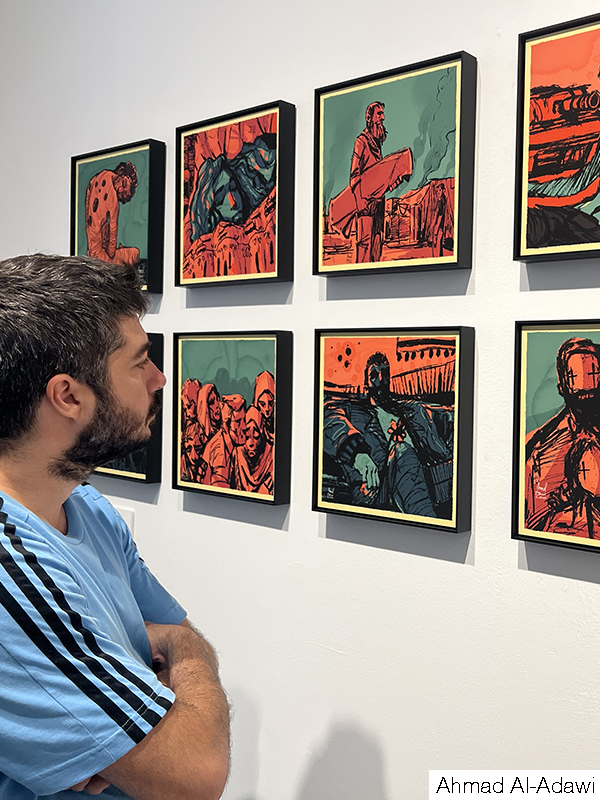Mónica Jover, Volkan Diyaroglu, Carla Fuentes, Josep Tornero, Nanda Botella, María Aranguren, i Rafael del Corral, reunits baix el paraigues de la Biennal de Pintura Mª Isabel Comenge.