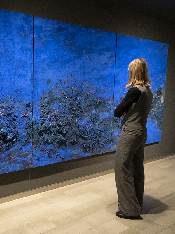 Pintura matérica de gran formato que evoca fondos marinos y paisajes volcánicos. Eso es lo que encontraréis en Caleb, en la sala más pequeña de la Fundación Bancaja. Tienen volumen, son convulsos, despliegan colores preciosos y, efectivamente, son cuadros que te transportan al fondo del mar. Detrás de ellos está la mano de Cristina Babiloni, que los pinta en horizontal sobre una madera especial para barco. Ha de ser resistente porque sobre ella descansa el peso de capas y capas hechas con distintas técnicas que deben secarse una a una. Arena, arpillera, redes, materiales de desecho y maderas se revuelven para conformar obras que, según apuntaba la comisaria de la muestra, beben de la luz de Turner y de lo matérico de Kiefer. S.M.