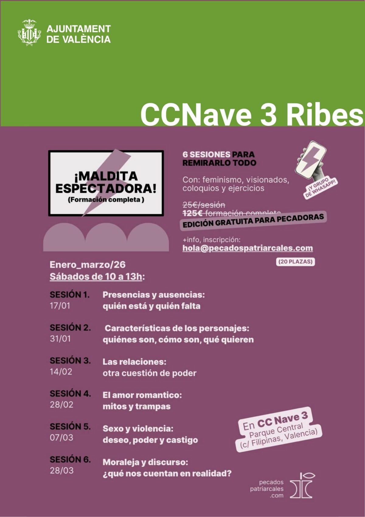 ¡Maldita espectadora! es un taller teórico-práctico ideado por Noelia Terrer, de Pecados Patriarcales, vecina del barrio y coordinadora del ciclo Mujeres que comentan. A lo largo de seis sesiones, el taller propone un recorrido crítico para desvelar en profundidad cómo el patriarcado atraviesa el cine y las series. Analizaremos la mirada, la construcción de personajes, ... Leer más