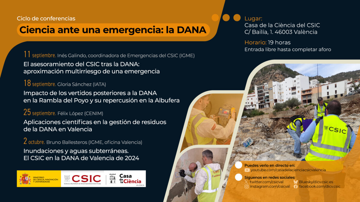 Coincidiendo con el primer aniversario de la catástrofe natural sufrida en la provincia de Valencia el 29 de octubre de 2024, la Delegación del Consejo Superior de Investigaciones Científicas (CSIC) organiza el ciclo de charlas «Ciencia ante una emergencia: la DANA», para abordar los trabajos de asesoramiento en la recuperación que el organismo ha desarrollado ... Leer más