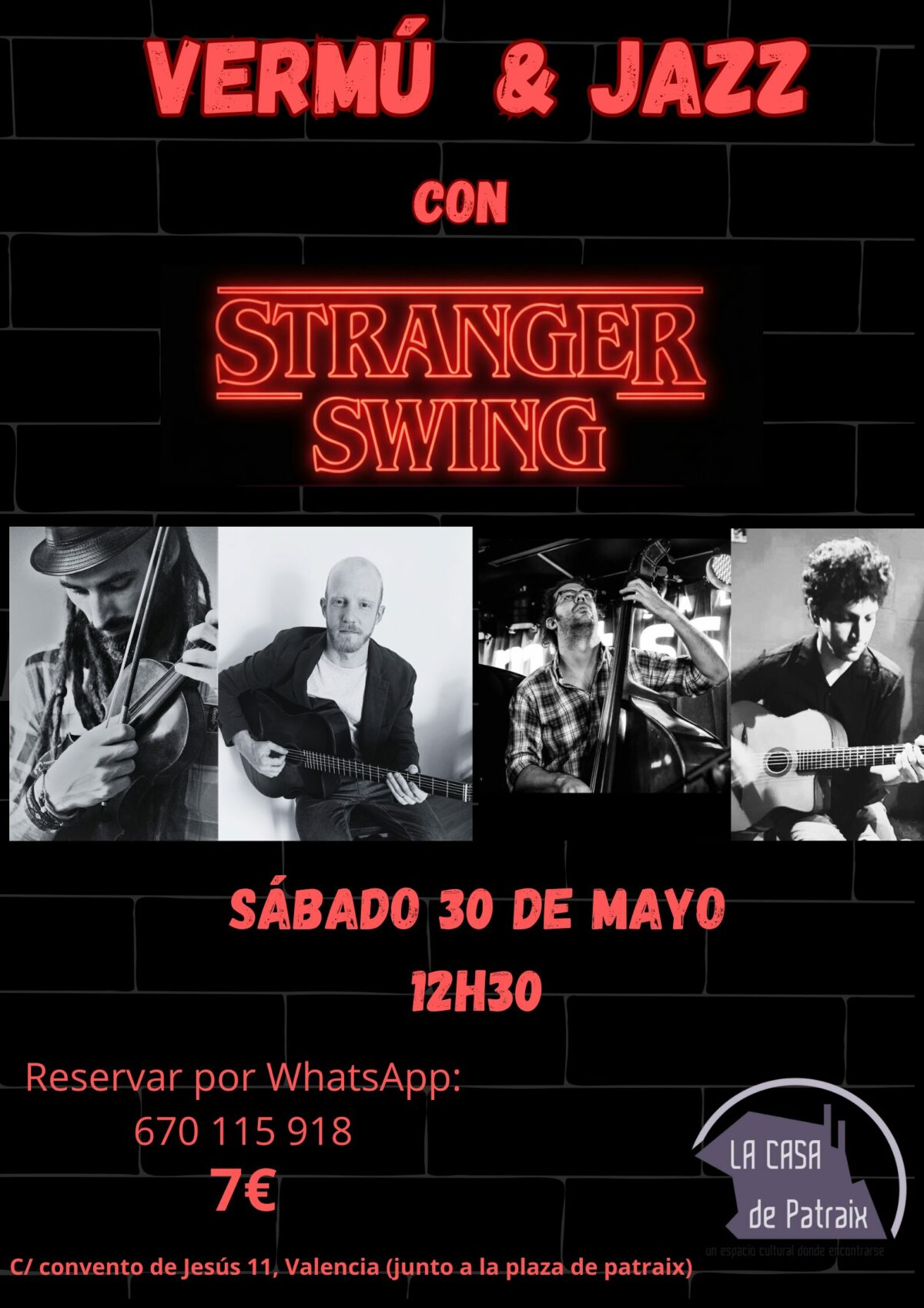 La música de Django Reinhardt y Stéphane Grappelli es la esencia del Jazz Manouche: una mezcla vibrante de swing/jazz americano, alma gitana y elegancia francesa. ​Stranger Swing interpreta los clásicos de Django y del Jazz en general, creando una atmósfera acústica que es, al mismo tiempo, sofisticada, melancólica y puramente virtuosa. El grupo Stranger Swing está compuesto por: ... Leer más