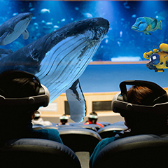 ¡El acuario del Oceanogràfic se ha transformado en un océano! Suddenly, nos encontramos en el Caribe, donde aparecen ballenas y tiburones. Recorramos los principales ecosistemas del planeta con gafas de realidad mixta. GLORIA POZUELO