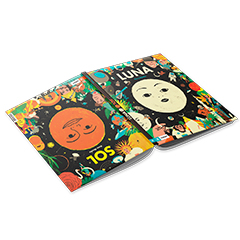 Como en la vida real, en este libro, la luna y el sol comparten espacio, aunque estén condenados a no encontrarse. Dos portadas diferentes para un libro dividido en dos partes con el que conocer todo sobre estos astros fascinantes que condicionan el mundo. F.MARTÍN