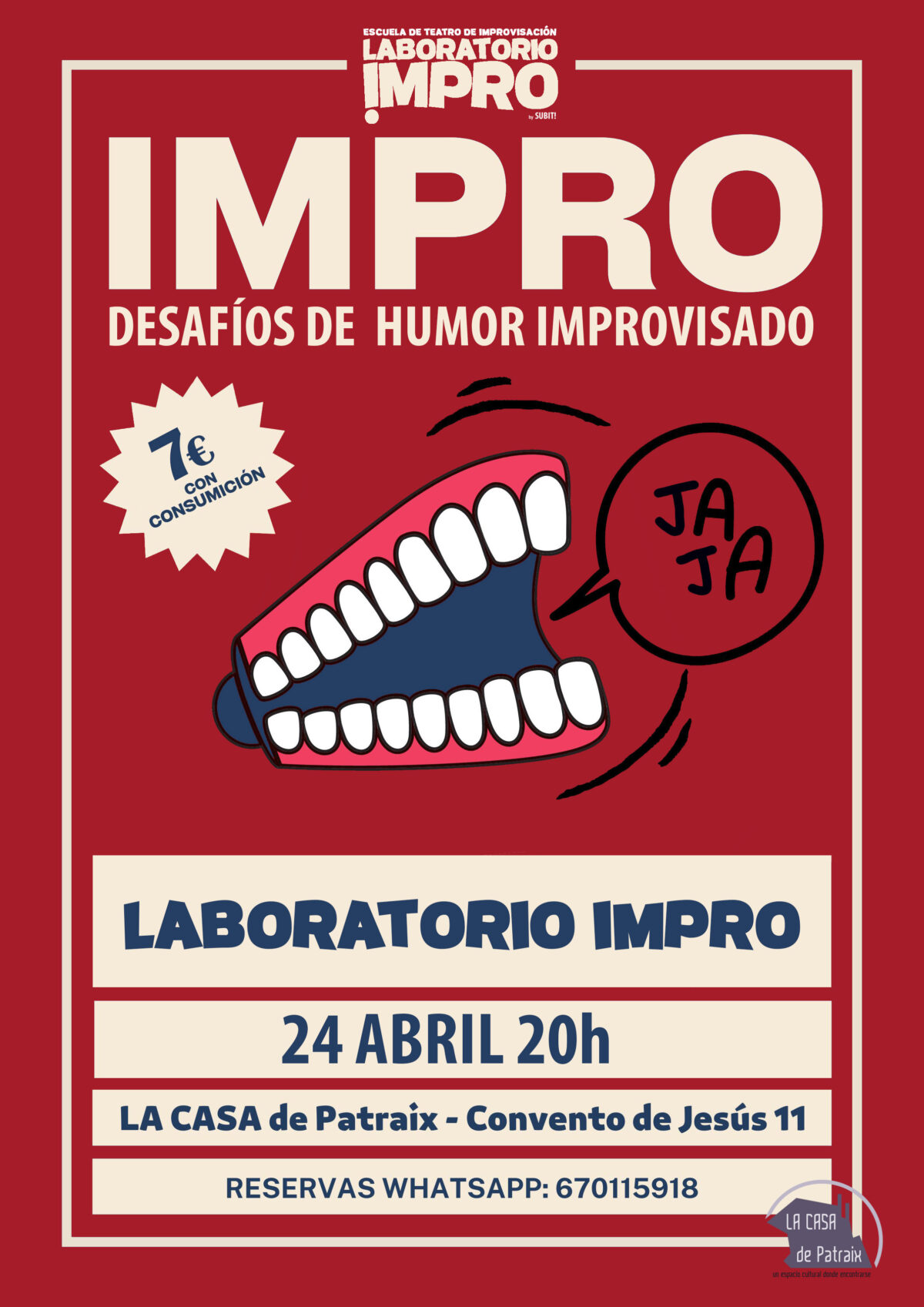 Nueva sesión 2026 de las IMPROS de Laboratorio Impro Desafíos de improvisación teatral a cargo de improvisadorxs de Laboratorio Impro. Come and put them to the test!!! 3…2…1…IMPRO! WhatsApp reservations in the 670115918