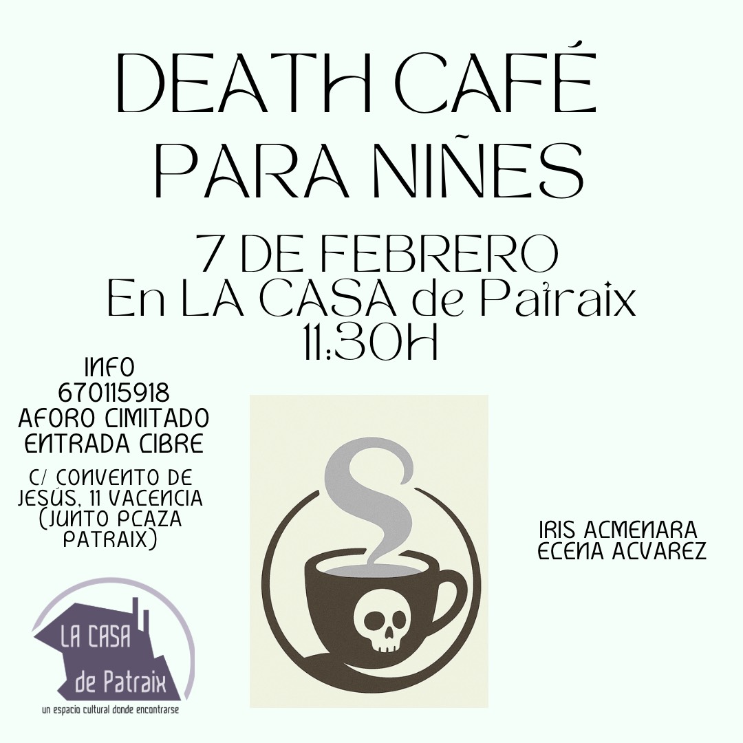 ESPECIAL DEATH CAFÉ PARA NIÑES, NIÑOS, NIÑAS A PARTIR DE OCHO AÑOS, acompañados por un tutor legal. Los Death Cafés son DEBATES PARA CONVERSAR SOBRE LA MUERTE, se trata de un espacio libre donde hablar desde el respeto. NO es un grupo de apoyo al duelo. Conducido por Iris Almenara y Elena Alvarez. LA ENTRADA LIBRE, consumición obligatoria para apoyar a LA CASA. ... Read more